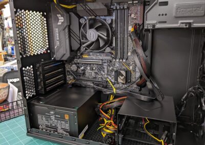 - Installed the power supply (PSU) in the case (no sequential photo)
