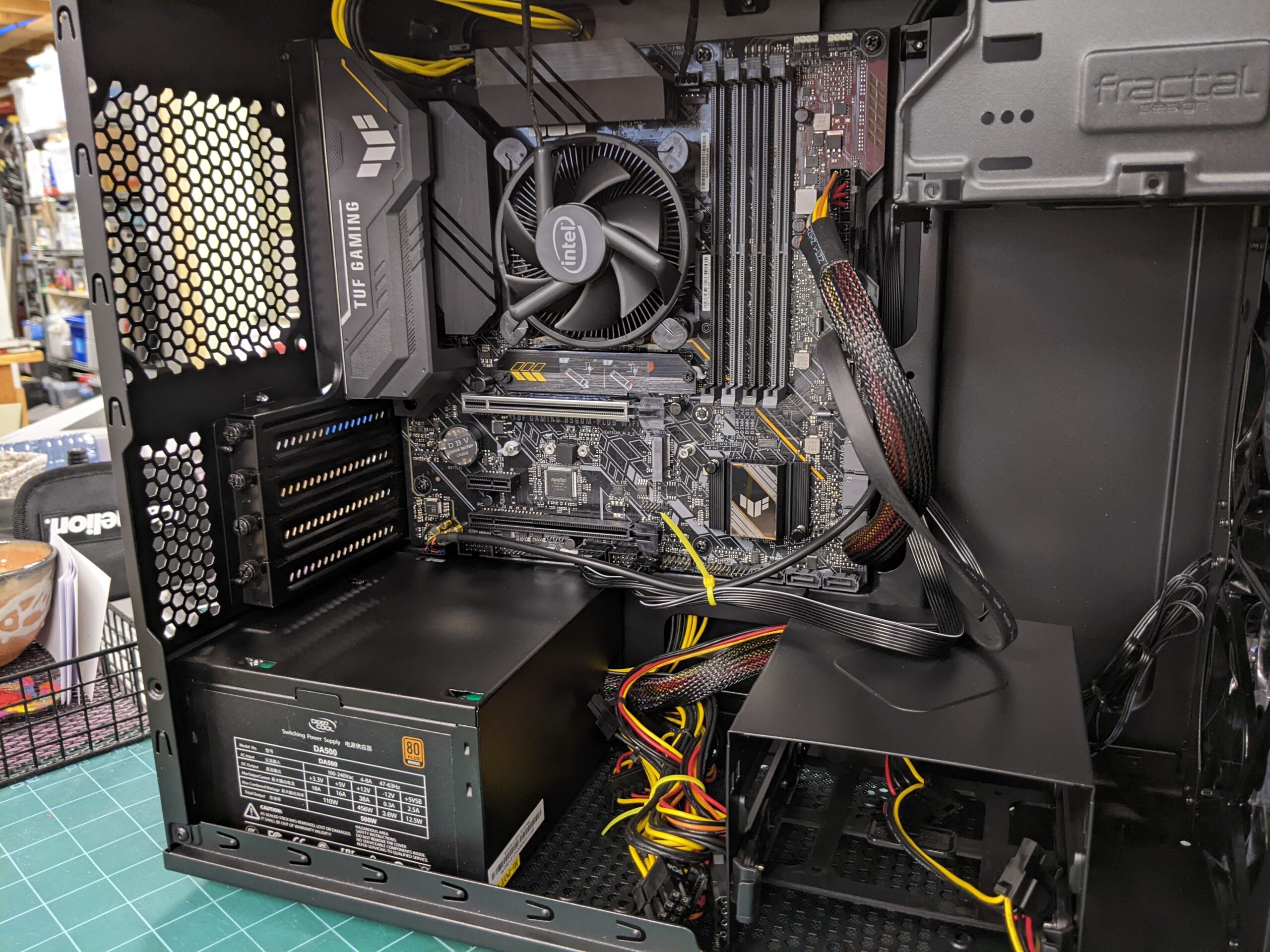 - Installed the power supply (PSU) in the case (no sequential photo)